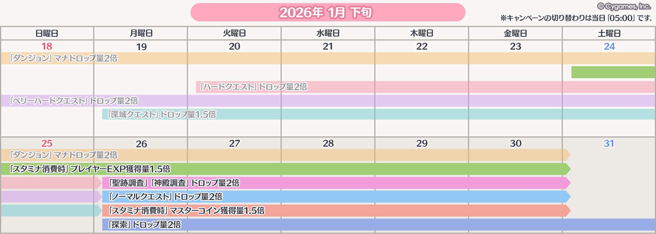 2026/01/26(月) 05:00 ~ 2026/01/31(土) 04:59